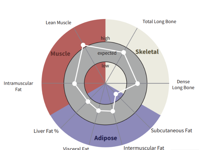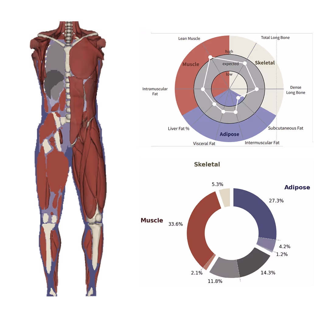 Anatomically accurate, age-adjusted analysis of muscle, bone, and fat, all in one scan.